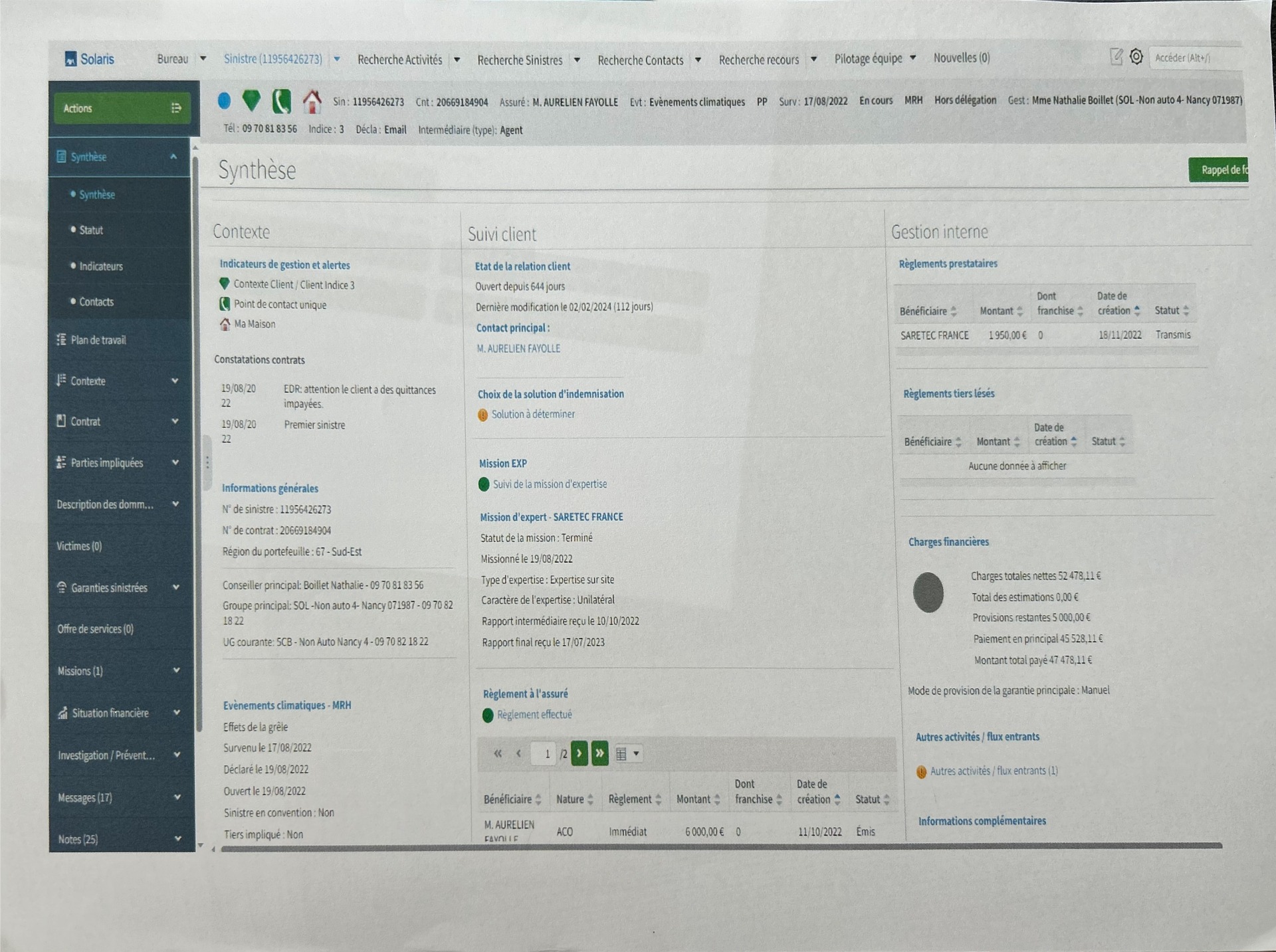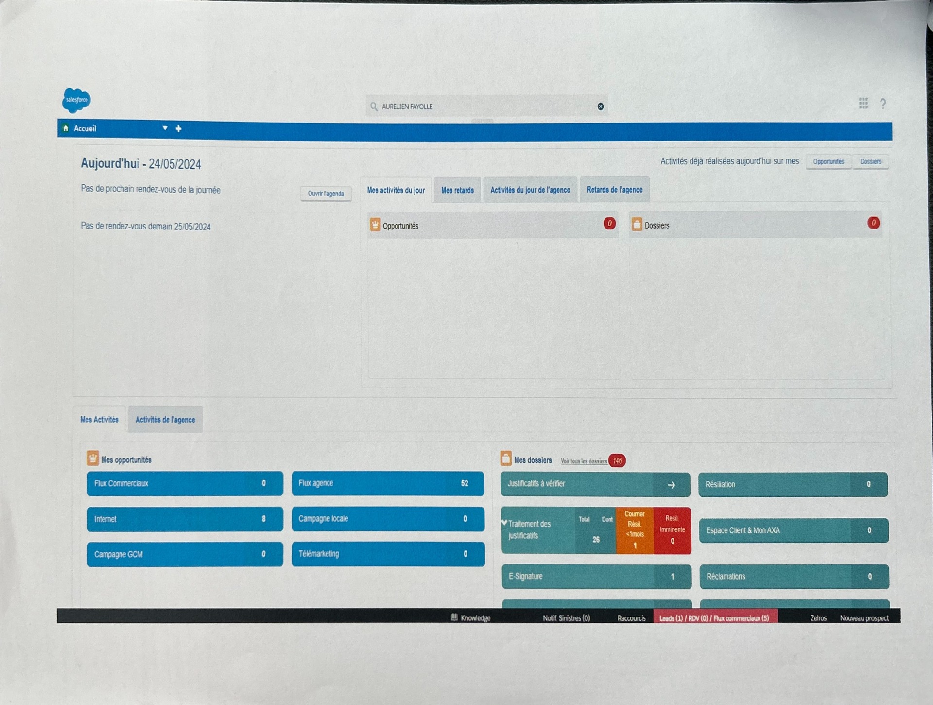 Parmi ces outils, j'ai travaillé sur Salesforce, un outil de pilotage quotidien de l'activité, et sur Solaris, le logiciel métier d'AXA pour la gestion des contrats et des sinistres.